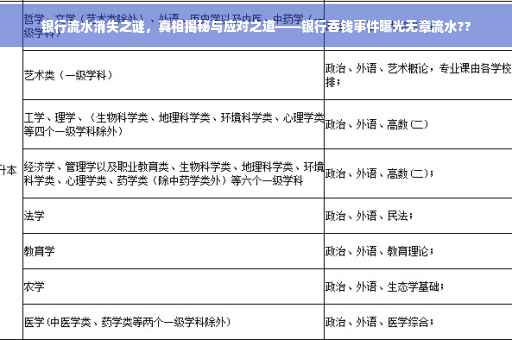 “银行吞钱流水消失”的现象已经引起了广泛关注与担忧,作为受害者,我们应积极应对;政府部门和银行也应加强监管和改进服务,共同维护金融秩序和公众利益,只有通过共同努力,我们才能有效解决这一问题并确保个人财产安全,公众应提高警惕,增强金融安全意识,避免不必要的损失。
