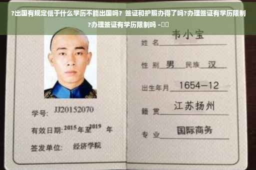 办理签证和护照都是不需要学历要求的,出国更加不会因为学历问题限制你出境。不过签证方面可能高学历对过签有一定的正向帮助,但绝不会因为学历低而直接拒签。一般递资料后,签证官会根据你的资产证明、有没有不良出境记录、出境目的、有没有移民倾向、资料有没作假成分等考虑是否通过。有的国家申签通过率是很高的甚至可以免签,不过比如说一些发达国家或者敏感国家的申签通过率会相对偏低。比如有的国家还会以1.申请者的年龄、职业、户籍(敏感地区)、婚姻状况;2.年轻单身女性和离异者;3.护照上没有任何出国记录、出入境章;4.资产证明,如果收入过低或没有固定收入拒签概率相对大一些;等考虑因素。