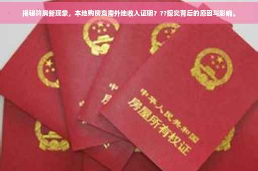 近年来,随着房地产市场的持续火热,购房现象愈发引人关注,一种令人颇感意外的情况逐渐浮出水面——本地购房竟需要外地收入证明,这一现象背后究竟隐藏着怎样的原因?本文将从多个角度深入探讨这一问题,并为大家揭示其中的真相。