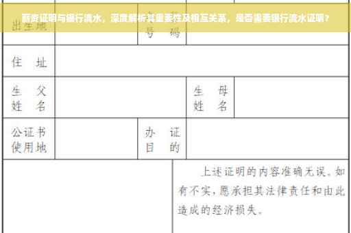 摘要:关于薪资证明是否需要银行流水,本文将详细解析薪资证明与银行流水的重要性及关系。银行流水在薪资证明中起到重要作用,能够证明个人的收入状况。但不是所有情况下都需要提供银行流水,具体情况需根据招聘单位或相关机构的要求而定。本文旨在帮助读者了解薪资证明与银行流水的关联,以便更好地应对相关场景。