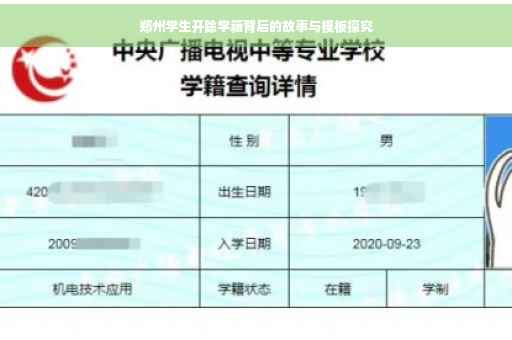 摘要:郑州某学生因违反学校规定被开除学籍,这一事件引起了广泛关注。据相关报道,该学生开除学籍证明书的背后隐藏着一些不为人知的故事。该事件引发了社会各界的热议,人们纷纷对此事展开探讨。关于该学生的具体情况以及开除学籍的原因,目前尚不得而知,需要进一步的了解和调查。也提醒广大学生要遵守学校规定,珍惜学习机会。