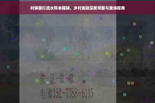 随着农村经济的发展和金融改革的深入,村镇银行作为服务农村的重要金融机构,其运营状况备受关注,本文将深入探讨村镇银行的流水账单,揭示其服务农村的真实面貌,分析存在的问题并提出相应的发展建议。