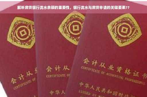 银行流水在房贷申请过程中具有重要的作用,申请人在准备房贷申请时,应关注自己的银行流水状况,提前了解并符合银行的贷款要求,保持良好的信用记录、稳定的收入来源以及合理的财务规划都是成功申请房贷的关键要素,希望本文的解析能帮助大家在申请房贷时更加顺利。