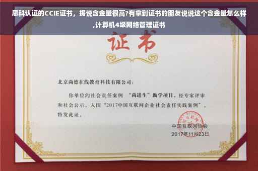 大家好,关于计算机4级网络管理证书的问题,于是小编就整理了4个相关介绍计算机4级网络管理证书的解答,让我们一起看看吧。