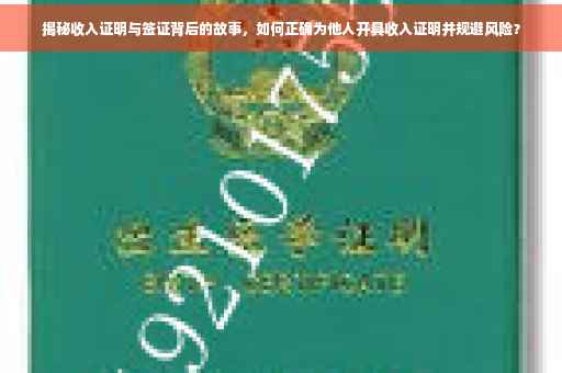 摘要:本文将揭示收入证明与签证背后的关联,探讨如何正确帮助他人开具收入证明,并探讨在此过程中可能存在的风险。本文将指导读者了解在帮助他人办理签证时,如何合理、合法地提供收入证明,并提醒注意避免不当操作带来的潜在风险。本文还将提供一些建议和注意事项,以帮助读者更好地处理相关问题。