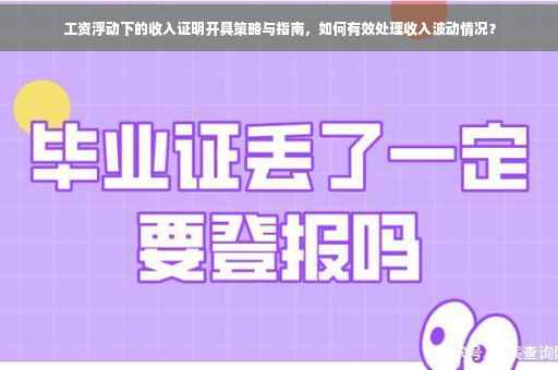 摘要:面对工资浮动的情况,如何开具收入证明成为一项重要任务。本文将为你提供策略与指南,帮助你应对这一挑战。明确工资浮动的范围及原因;收集相关证据和资料,如工资条、银行流水等;联系雇主开具证明,详细阐述收入情况,包括固定工资和浮动收入;确保证明真实有效,加盖公章。本文为你提供了一揽子解决方案,让你在工资浮动时也能顺利开具收入证明。??