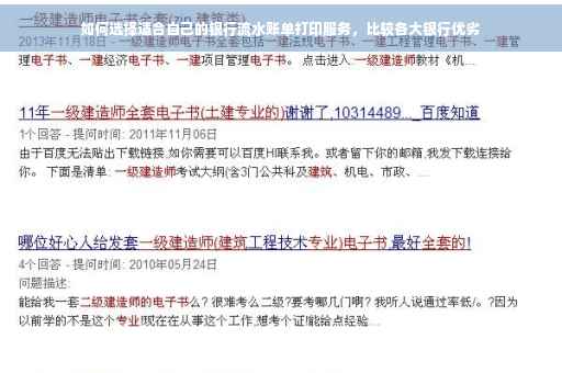 4、在选择银行和打印流水账单过程中,如遇问题可咨询银行工作人员,获取专业解答,总之在选择适合自己的银行打印流水账单服务时,要明确需求、比较各大银行的服务特点、关注关键因素、掌握正确的打印方法并注意事项,这样才能轻松管理财务,满足个人和企业的需求,希望通过本文的介绍,您能更好地选择适合自己的银行流水账单服务,实现财务的自由和便捷管理,也提醒广大读者,在财务管理过程中要保持警惕,确保信息安全和账单的真实有效性。