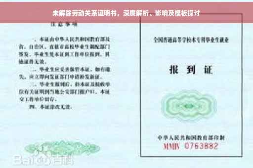在当今社会,劳动关系作为社会最基本的经济关系之一,其和谐稳定对于社会的发展至关重要,随着时代的变迁和经济的发展,劳动关系问题也日益凸显,在这个过程中,“未解除劳动关系证明书”作为一种重要的法律文件,对于劳动者和企业来说具有深远的影响,本文将详细解读未解除劳动关系证明书的含义、作用,以及其在实际应用中的影响。