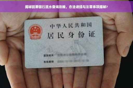 摘要:本文将为你揭示查询前妻银行流水的全攻略,包括合法途径和注意事项。通过合法渠道获取相关授权和证明文件,可以查询前妻的银行流水账单。本文将详细介绍查询流程,并提醒读者注意保护个人隐私和遵守法律法规,确保在查询过程中不侵犯他人权益。