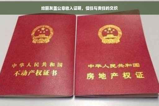 摘要:为朋友盖公章收入证明,体现了朋友间的信任与责任。撰写时需慎重对待,确保内容真实、准确。简要说明收入情况,包括职位、薪资及福利待遇等,并强调证明的真实性和有效性。此过程需遵守法律法规,谨慎使用公章,以免引发不必要的纠纷。这份证明不仅是对朋友的支持,更是对友谊和信任的见证。
