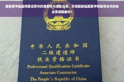 在当前全球疫情的大背景下,医学隔离观察作为防控疫情的关键措施,对于保障公共卫生安全具有至关重要的作用,对于接触过确诊患者、来自疫情高发地区或存在其他高风险因素的人员,解除医学隔离观察证明书是他们重返正常生活的必备凭证,本文将详细阐述解除医学隔离观察证明书的重要性、实际应用及办理流程。