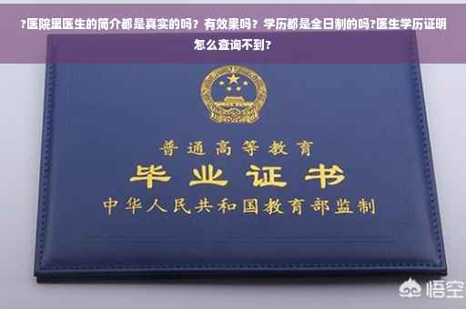 医院里的医生简介都是真实的。绝大多数的医生都是全日制医学院毕业生和研究生。连本科毕业生都是五年制。当医生必须有医生资格证。而且考证很严格。因为医生是救死扶伤实现人道主义的主力军。必须有牢实的医学知识。学历高经验丰富的医生最受病者求医的目标。