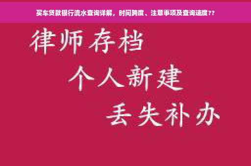 摘要:在申请买车贷款时,银行流水查询的时间跨度通常为近半年至一年。查询时需注意提供真实有效的银行流水记录,避免短时间内大量存款或转账等操作,以免影响贷款审批。查询时间因银行和地区而异,一般在一周左右可查到。为确保顺利贷款,建议提前咨询银行要求并准备好相关材料。