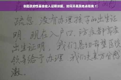 摘要:关于阜阳政府性基金收入证明,该证明文件用于证明个人或企业在阜阳地区的政府性基金收入情况。如需开具该证明,可前往阜阳地方政府相关部门,如财政局或税务部门等,进行咨询并办理相关手续。确保提供必要的材料,如身份证明、企业证明等,以顺利获取收入证明。