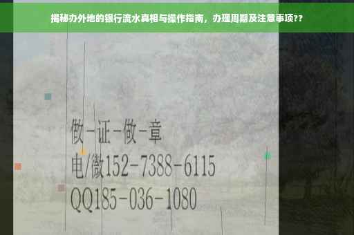 摘要:本文将揭示办外地的银行流水的真相与操作指南。读者将了解办理流程、所需材料及时长等信息。本文将帮助读者了解银行流水的重要性,并提醒注意事项,确保办理过程顺利。操作指南将提供实用的建议和步骤,帮助读者成功办理外地的银行流水。