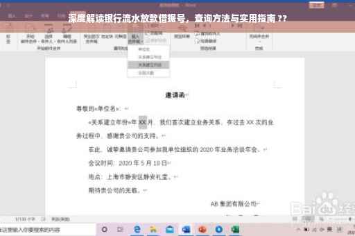 摘要:本文将深度解读银行流水放款借据号,为读者提供实用指南。内容包括如何查询银行流水放款借据号,以及相关的注意事项和常见问题解答。通过本文,读者可以了解如何轻松查询银行流水放款借据号,保障自身权益。