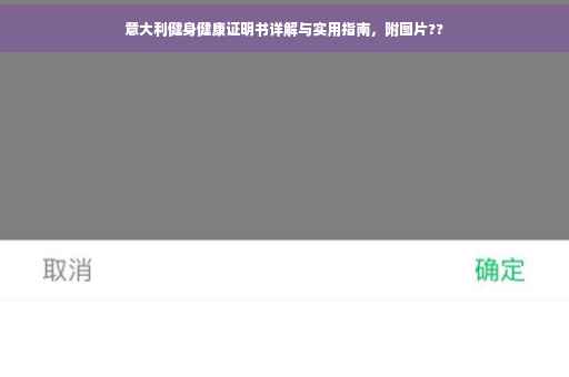 摘要:本指南详细介绍了意大利健身健康证明书,包括证书的图片和实用指南。通过本指南,您可以全面了解意大利健身健康证明书的重要性和申请流程。无论您是前往意大利旅行还是居住,这份证明书都是确保您健康的重要文件。跟随本指南,您将轻松获取并理解这份证明书,为您的健身和健康之旅提供有力支持。