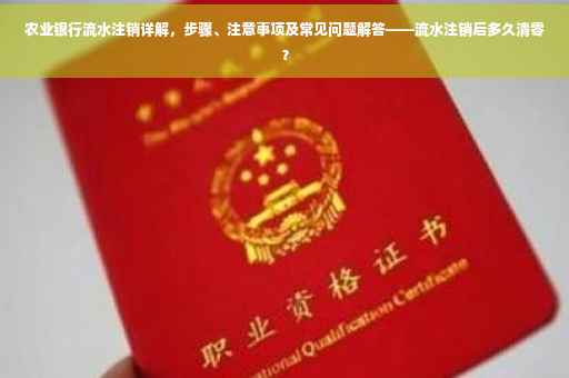 摘要:本文介绍了农业银行注销流水的详细步骤和注意事项,包括需要准备的材料和操作流程。解答了关于农业银行注销流水多久清零的常见问题。文章旨在帮助用户顺利完成农业银行注销流水的操作,避免出现问题。