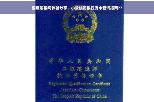 摘要:本文将深度解读并分享小象优品银行流水的查询体验。通过简单步骤,用户可轻松查询银行流水,包括收入、支出等详细交易记录。本文将指导读者如何便捷地获取银行流水,并分享个人使用心得和体验感受,帮助用户更好地了解和使用小象优品银行服务。