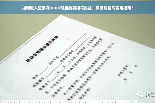 摘要:关于收入证明开具3000元是否合适的问题,需结合实际情况具体分析。本文将深度解析背后的真相与挑战,包括收入证明的作用、个人实际收入情况、所在行业的收入水平等因素。提供开具收入证明的具体步骤和注意事项,帮助读者根据自身情况合理开具收入证明。