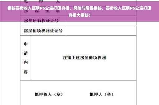 随着房价的不断攀升,购房已成为许多人生活中的重要事件,在购房过程中,收入证明是评估购房者是否具有偿还房贷能力的重要依据,近年来,关于买房收入证明PS公章打印的传闻和做法屡见不鲜,引起了广泛关注,本文旨在揭示这一现象的真相,让读者了解其中的风险与后果。