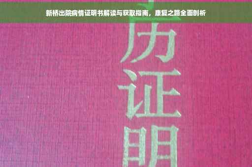 新桥出院病情证明书是患者康复过程中的重要文件,它详细记录了患者的病情、治疗方案及出院时的身体状况,了解病情证明书的内容,遵循医嘱进行康复,对于患者的康复至关重要,本文全面解读了新桥出院病情证明书及康复之路的每一个环节,希望对患者及其家属有所帮助。