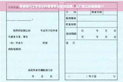 在当今社会,越来越多的人选择进入工厂务工来维持生计,对于工厂而言,招工过程中如何确保应聘者的真实收入及信用状况成为了一大难题,这时,银行工资流水作为一种重要的证明文件,越来越受到工厂的重视,本文将详细介绍银行工资流水的作用、如何获取以及注意事项,帮助工厂和应聘者更好地理解和利用银行工资流水。