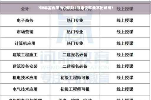 做顺丰的学历要看你去应聘什么职位,如果是应聘快递员、司机、运作员等一线工作,只需初中文化就可以的,如果是二线,如仓管员、文员类,最低要高中以上学历,大多是大专以上;基层管理若是外聘的话也需要大专以上学历,中层管理和高层管理外聘的话需本科以上。