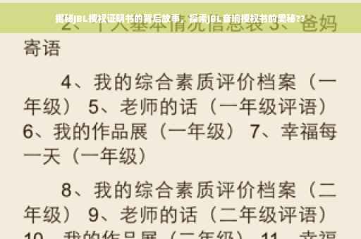 揭秘JBL授权证明书的背后故事。这份授权书是关于知名音响品牌JBL的权威证明,它背后隐藏着一段关于品牌授权的重要历程。这份证明书不仅证明了某公司或个体获得了JBL的官方授权,更是对JBL品牌信誉的保障。通过这份授权证明书,消费者可以更加放心地购买到正品JBL音响,享受到优质的音乐体验。