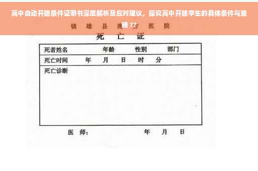 摘要:本文介绍了高中自动开除条件证明书的相关内容,深度解析了高中开除学生的各种条件,包括违纪、学业成绩、行为表现等方面。本文也提供了应对建议,帮助学生和家长了解如何应对可能面临的高中开除风险。通过本文,读者可以更好地了解高中开除制度,为自身或孩子的未来发展做好准备。