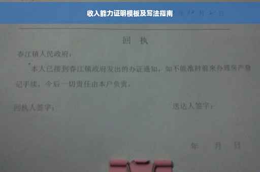 本文详细介绍了如何撰写收入能力证明,包括目的、结构、要点、注意事项以及具体撰写步骤和案例分析,希望本文能帮助读者更好地了解如何展示自身收入状况和偿债能力,为各种场合提供有力的支持。(注:在实际撰写过程中,请根据实际情况灵活调整内容,确保信息的准确性和完整性。)