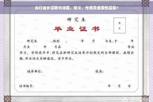 自行返乡证明书是一种用于证明个人行程的文件,主要用于证明个人在特定时期(如疫情期间)自行安排交通工具,安全返回居住地的事实,该文件通常由个人提出申请,经过相关部门或单位核实后出具。