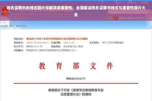 摘要:本文将介绍姓名证明书的格式图片及其重要性。通过展示姓名证明书的格式图片,帮助读者了解姓名证明书的正确书写方式。强调姓名证明书的重要性,如用于证明个人身份、办理各类证件等。本文旨在让读者了解并正确使用姓名证明书,避免因格式错误而影响其法律效力。