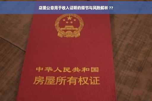 在当今社会,随着经济的繁荣和就业形式的多样化,越来越多的人开始关注自己的收入证明问题,一些人可能会遇到这样的情况:在自家的店铺工作或从事某些业务时,需要使用收入证明来办理贷款、信用卡或其他业务,这时,他们可能会产生疑问,店里的公章能否用于收入证明?本文将详细解析这一问题,并探讨其中可能存在的风险。
