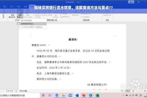揭秘买房过程中的银行流水结息细节,一篇文章全面解读。文章详细介绍了如何查询银行流水结息,包括步骤、注意事项等。让读者了解银行流水结息的重要性及其在购房过程中的作用,同时提醒大家在查询过程中保持警惕,避免陷入不必要的麻烦。助你轻松应对买房过程中的银行流水问题。摘要字数控制在约150字左右。
