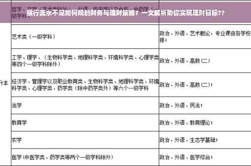 随着理财意识的增强,人们越来越关注如何通过理财实现财富的增值,在这个过程中,银行流水不足成为许多人面临的难题,本文将详细解析这一问题,探讨财务规划与理财策略的核心价值,并给出实用的解决方案和建议。要理解银行流水在理财购买中的重要性,银行流水是评估个人经济状况的重要指标,它反映了申请人的收入状况和还款能力,在购买理财产品时,银行通常要求提供一定时期的银行流水证明,以确保申请人的还款能力,充足的银行流水是购买理财产品的重要前提。