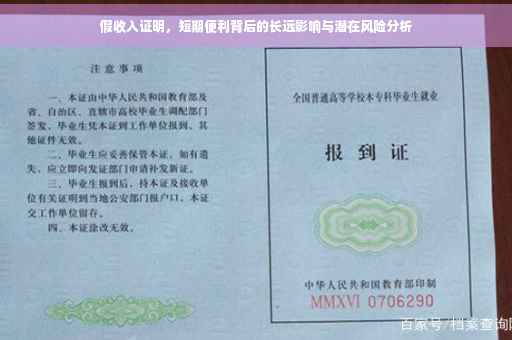 在当今社会,假收入证明逐渐浮出水面,成为一些人为了获取贷款、信用卡或其他利益而采取的手段,虽然假收入证明可能短期内带来便利,但其背后潜藏的风险和长期影响却不容忽视,本文将深入探讨假收入证明的危害性及其对个人和社会产生的深远影响。