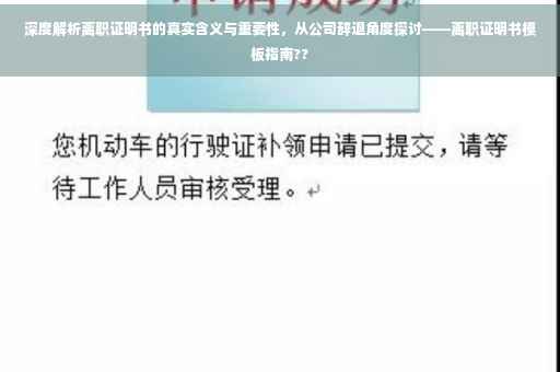 在当前职场竞争日趋激烈的环境下,离职已成为众多职场人士不得不面对的现实,离职证明书作为员工离职手续的重要环节,其意义愈发重大,本文将从含义、作用、公司辞退员工的情境与离职证明书的关系以及公司在处理相关事务时的注意事项等方面,全面解析“公司辞退离职证明书”。