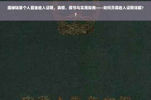 摘要:本文将揭示链家个人薪金收入证明的实际操作过程及细节,包括真相和实用建议。读者将了解如何正确开具收入证明,包括所需材料、步骤和注意事项。本文旨在帮助个人在申请贷款、信用卡或其他金融需求时,顺利获取准确的收入证明,确保顺利办理相关手续。