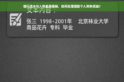 在现代金融社会中,银行业务与我们的日常生活紧密相连,有时我们可能会发现银行流水与实际的入账金额存在不符的情况,本文将为您揭示背后的原因,解析可能带来的影响,并教您如何应对,以保障个人权益。