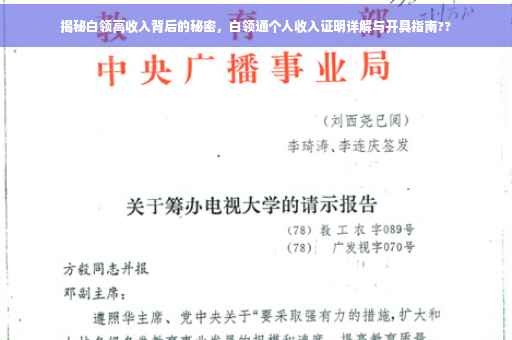 摘要:白领通个人收入证明是展示白领高薪的重要证明文件。本文将揭秘高薪背后的秘密,并介绍如何开具白领通个人收入证明。通过本文,您将了解如何准备相关材料、填写申请表格以及注意事项,以便顺利开具个人收入证明。这篇文章将帮助您了解白领通个人收入证明的重要性及如何正确开具,为您的职业生涯增添信心与便利。
