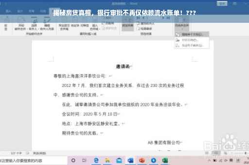 摘要:近期揭秘房贷背后的秘密,银行不再仅仅依赖流水账单作为贷款的唯一依据。这意味着即使你的流水账单不够理想,你仍然有机会通过其他证明文件获得房贷。需要注意的是,不是所有银行都不看流水直接贷款,仍需选择信誉良好的银行和合适的贷款产品。在申请房贷前,务必了解清楚相关政策和要求。
