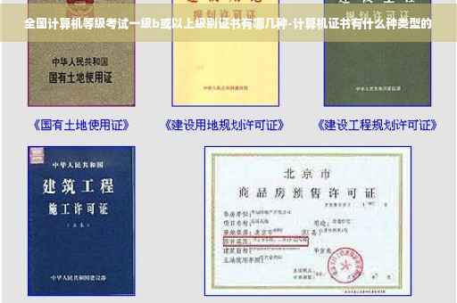 全国计算机等级考试一级b或以上级别证书有二级vb、二级c语言、二级C++、二级Java、二级WEB程序设计、二级VFP、三级PC技术、三级信息管理技术、三级数据库技术、三级网络技术等。 全国计算机等级考试(NationalComputerRankExamination,以下简称NCRE),是经原国家教育委员会(现教育部)批准,由教育部考试中心主办,面向社会,用于考查非计算机专业应试人员计算机应用知识与技能的全国性计算机水平考试体系。