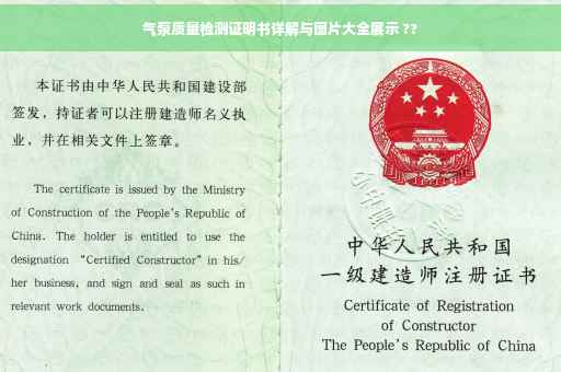 摘要:本文详细介绍了气泵质量检测证明书,包括其重要性、检测流程和标准等内容,同时提供了相关的图片展示。本文旨在帮助读者了解气泵质量检测证明书的详细信息,包括其格式、内容和作用等,以便更好地了解气泵的质量和性能。文章还提供了气泵质量检测证明书图片大全,供读者参考和了解。