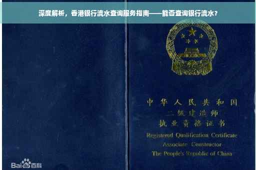 摘要:本文将深度解析香港银行的流水查询服务。探讨香港银行是否能查流水,并简要介绍查询流程及相关注意事项。通过查询银行流水,客户可以了解自身账户的资金流动情况,便于财务管理和规划。本文将提供必要的信息,以帮助读者更好地理解和使用香港银行的流水查询服务。