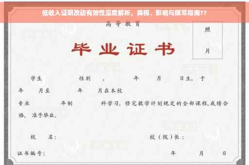 摘要:关于低收入证明的改动是否有效,本文进行深入解析。文章将探讨低收入证明改动的真相及其对受影响人群的实际影响。本文将指导读者如何撰写关于低收入证明改动是否有效的相关内容,语言简洁明了,针对性强。