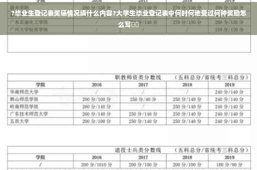 毕业生登记表奖惩情况主要填以下内容:奖励方面,获得学校三好学生次数,获得国家、省、市有关表彰,见义勇为,获得奖学金,助学金,获得发明专利,参加国际奥数竞赛及其他国际大赛获得奖励等。