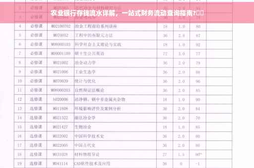 掌握农业银行存钱流水的知识对于个人财务管理至关重要,希望通过本文的介绍和分析,能够帮助你更好地管理个人资金,实现财富增长,建议定期关注农业银行的相关政策和活动,以获取更多的优惠和服务。