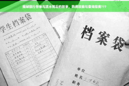 摘要:本文将揭示买房过程中银行存单与流水的重要性,教你如何巧妙运用这些资料轻松购房。还将介绍如何查询银行存单或流水,让你在购房过程中更加得心应手。掌握这些方法,将帮助你更顺利地完成购房过程。