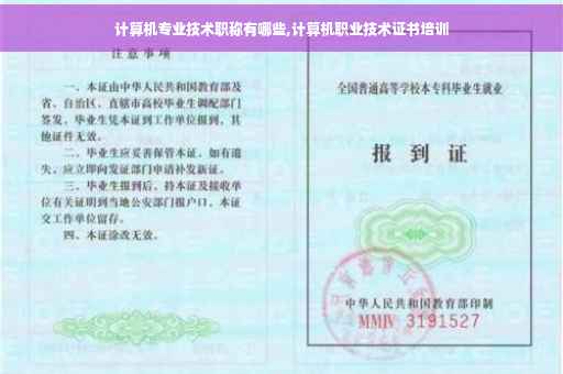 计算机专业技术职称有全国计算机信息高新技术考试,全国计算机信息高新技术证书作为反映计算机操作技能水平的基础性职业资格证书,在要求计算机操作能力并实行岗位准入控制的相应职业作为上岗证;在其它就业和职业评聘领域作为计算机相应操作能力的证明。